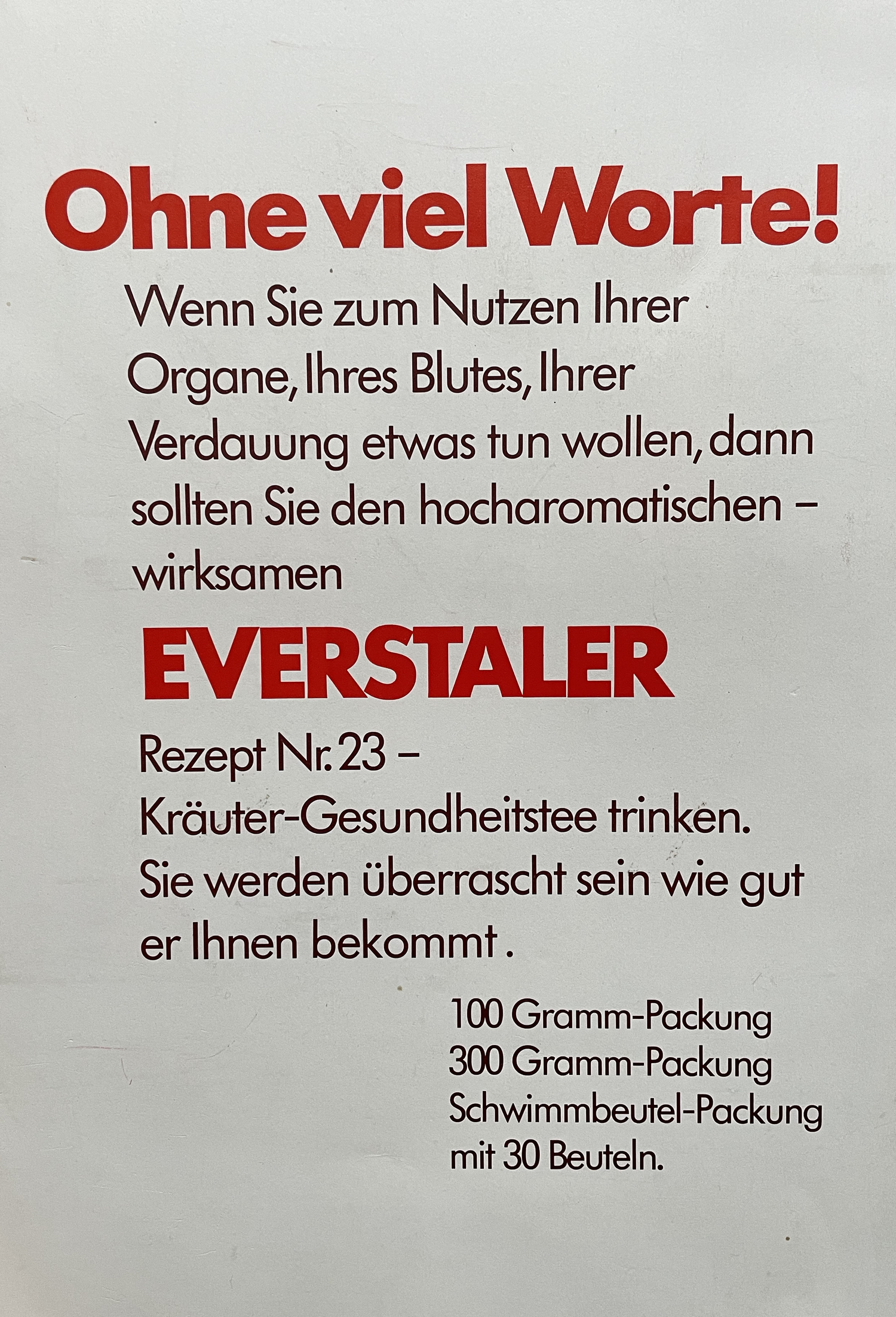 Cependant, divers événements ont fait que dans les années 1980, seule notre populaire tisane Rez n° 23 Everstaler était proposée.